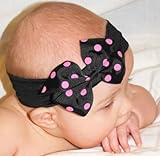 - 3.5" grosgrain bow pinwheel bow attached to a soft and stretchy baby headband.
